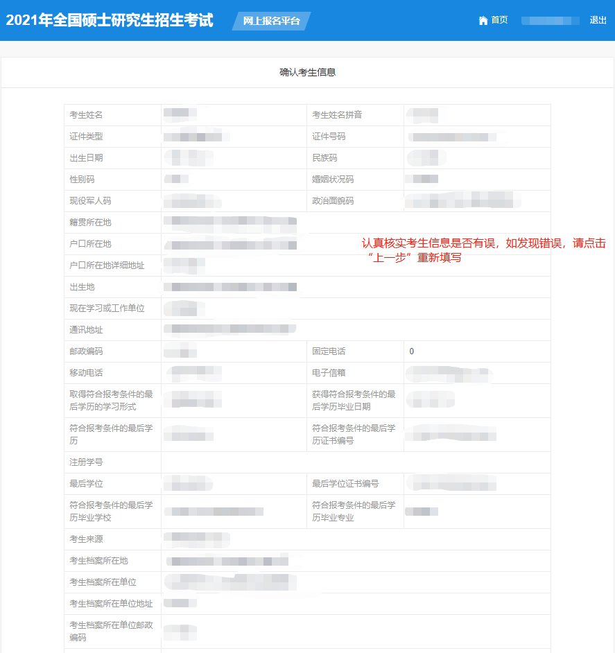 2.所有考生均应当对本人网上报名信息进行认真核对并确认。报名信息经考生确认后一律不作修改,因考生填写信息错误引起的一切后果由本人自行承担。