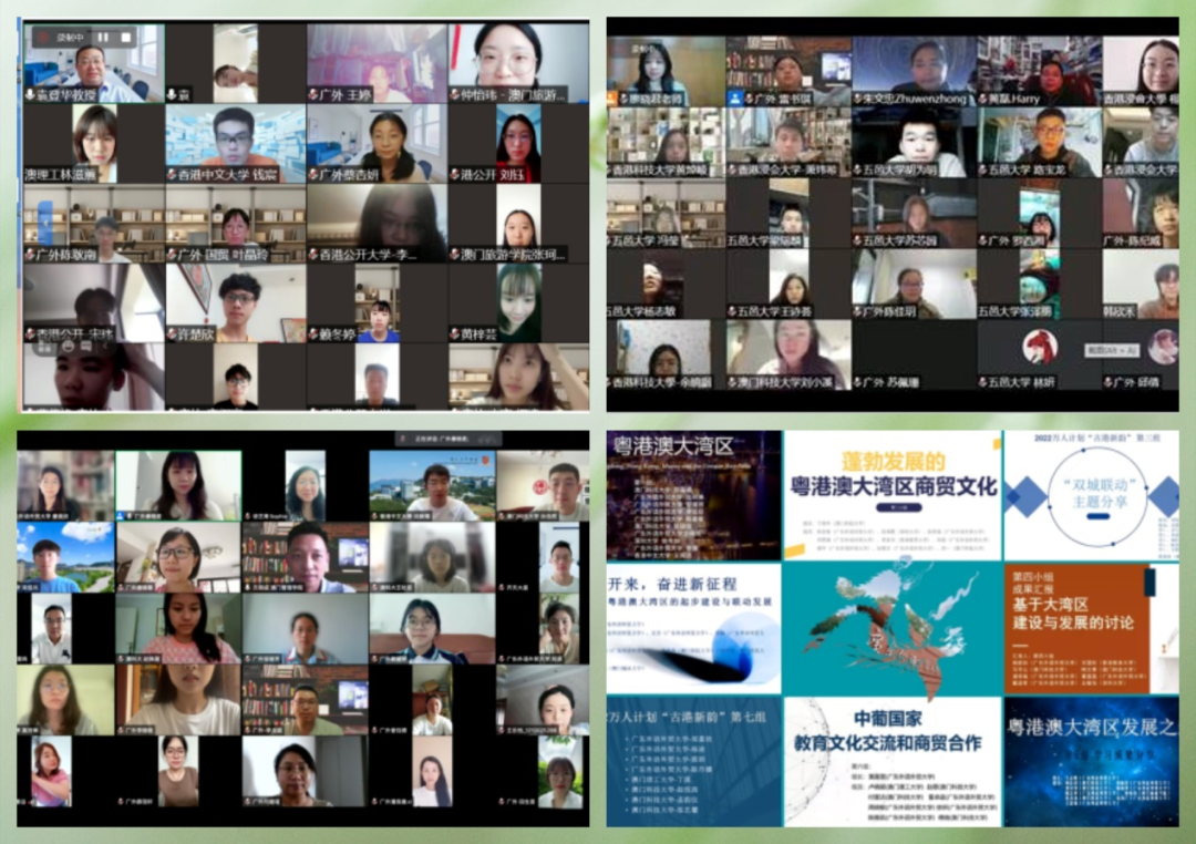 为支持内地与香港、澳门高校的交流合作,教育部于2013年设立“港澳与内地高等学校师生交流计划”(简称“万人计划”),广外在“万人计划”项目的开展中逐渐形成自己的特色优势:积极对接“一带一路”和大湾区教育的合作需求,紧密贴合国家战略,服务区域发展;整合学科优势资源,打造品牌项目;结合岭南文化,强化文化认同感。项目为三地师生搭建了线上交流平台,提供了丰富相关领域专业知识和增强文化自信的机会。