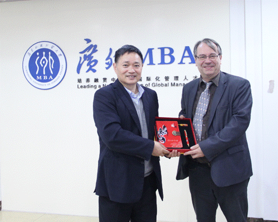 随后,Gilles Rouet对法国凡尔赛大学的办学做了简要介绍。他提到凡尔赛大学创建于1991年,2010年他们的高级管理学院成立。他提到法国凡尔赛大学的高级管理学院的基本情况,MBA项目中80%是外国学生,学生大多来自美洲、加拿大以及非洲,也有中国的留学生。François Goxe 提到凡尔赛大学已经和中国多所院校如上海交通大学等在MIB 和MBA项目方面开展了合作。并提出我们两校之间目前可以从短期游学项目、行业趋势研讨会、教师互动、网络联合课堂以及国际比赛或国际会议等方面开展一系列的合作。