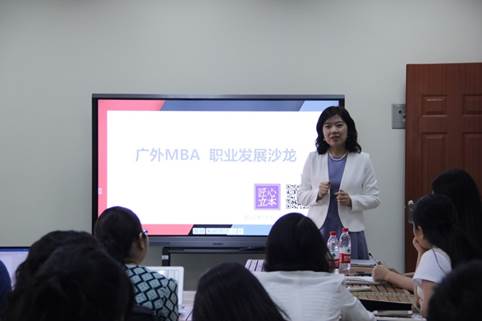 2019年10月15日上午,广外MBA职业发展讲座在MBA大楼国际丝路创业教育联盟广州基地顺利举行,本次讲座特别邀请了匠心立本总经理贾瑾女士作为分享嘉宾,以学生喜爱的沙龙形式开展,为MBA学子呈现了一次相当精彩又干货满满的分享。本次沙龙由MBA教育中心学生事务主管张春艳老师主持。