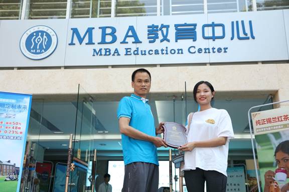 随后,魏传文为给本次活动提供大力支持的突出企业颁发企业突出贡献奖奖牌,分别有广发银行股份有限公司广州分行信用卡中心,中国建设银行广州白云支行,英伯伦锡兰红茶,华帝股份有限公司。徐艺青为给本次活动提供赞助支持的MBA校友19D班连丁同学,19C符宗卓同学、19E班黄利波同学以及12C班唐伟同学颁发荣誉证书。