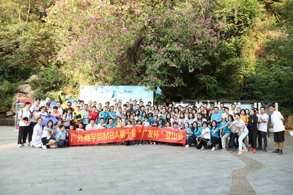 2019年11月17日,广东外语外贸大学商学院MBA第十届“广发杯”登山节活动在北校区MBA中心大楼前拉开帷幕。本次登山节活动的主题为:“汇商界领袖,聚国际精英,竞登云山之巅”。出席此次活动的领导和嘉宾有商学院党委书记魏传文老师、商学院副院长徐艺青老师、商学院MBA教育中心主任王刚副教授、商学院教师付秋芳教授以及MBA教育中心全体老师。此外,广外MBA师生及校友、MBA华南联盟成员、华南地区各兄弟院校MBA同学以及企业代表组成的参赛队伍和漫步云山队伍共计200余人共同参与了本次活动。