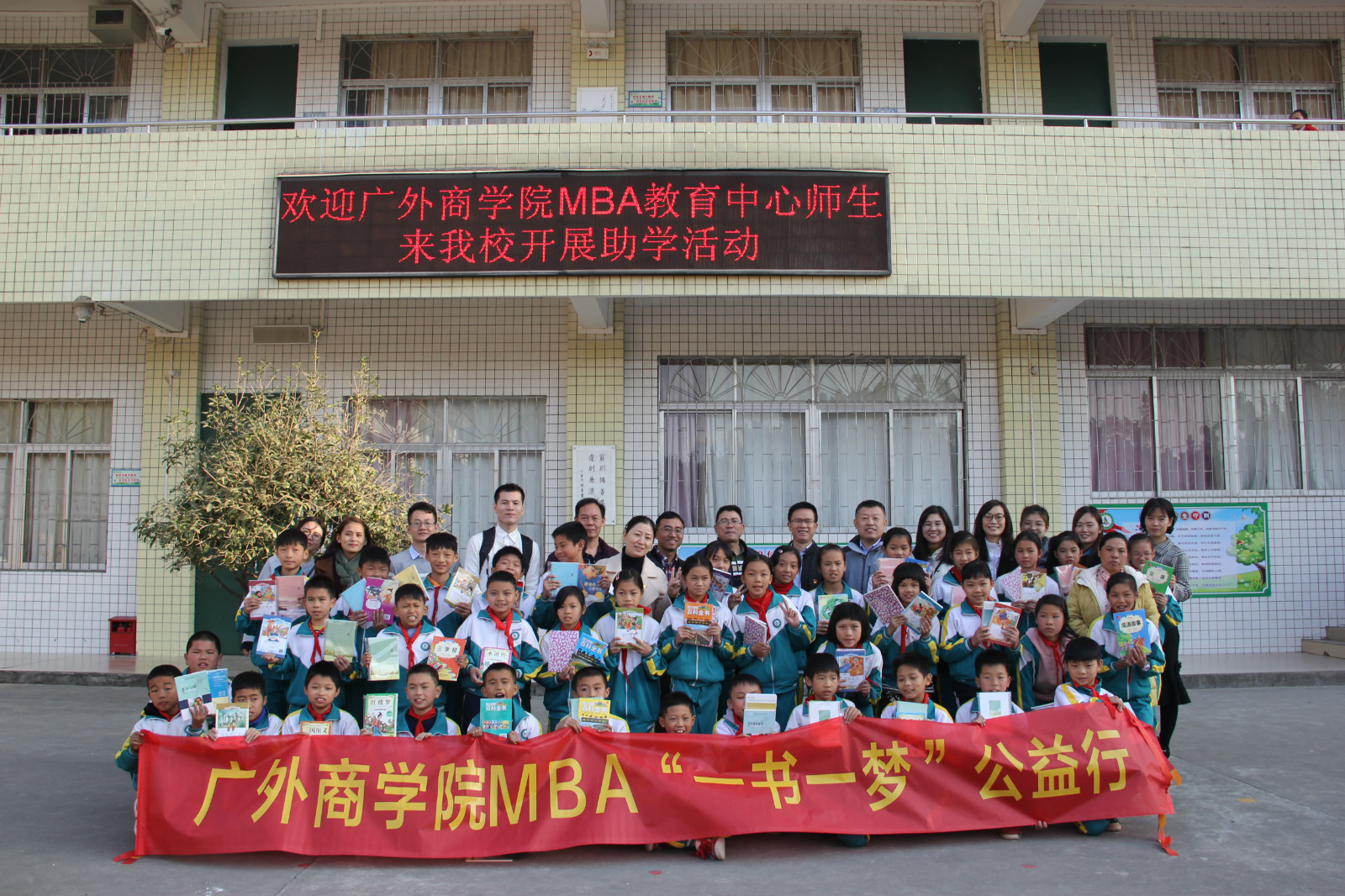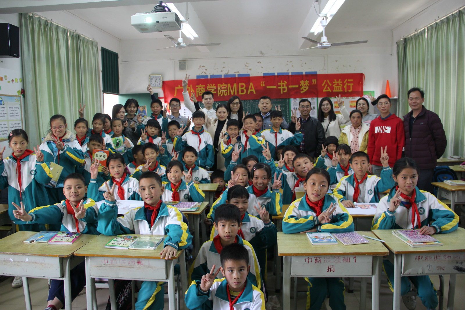 随后,为帮助小学生了解学习和读书的意义,认识到读书的重要性,一行人来到阳山县岭背镇中心小学开展“一书一梦”公益助学活动。岭背镇中心小学毛何业校长代表全校师生对广外驻村工作队及广外MBA师生的到来表示欢迎。MBA的同学们围绕“一书一梦”的主题在五年级(1)班开展了【画梦、说梦、寻梦、圆梦】的班会。