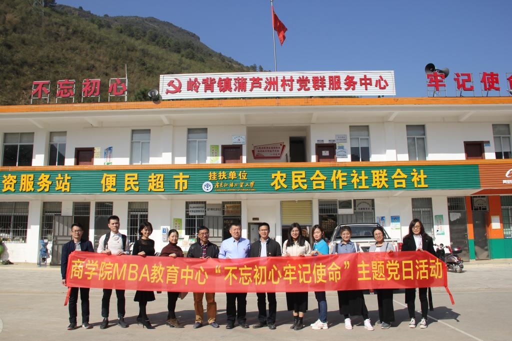 12月4日,商学院MBA教育中心党支部书记王刚带领MBA党支部同学十余人抵达蒲芦洲村开展“不忘初心、牢记使命”主题党日活动。在驻村扶贫干部林安杰、植仲培带领下,一行人参观了蒲芦洲村党群服务中心和特色农业种植基地,通过驻村干部的详细介绍,对扶贫工作的任务、蒲芦洲村沙田柚等产业项目有了更多的认识和了解,真切体验社会主义新农村建设红红火火。