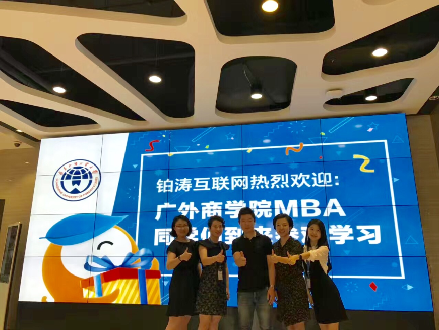 2017年5月13日,广东外语外贸大学商学院MBA教育中心16A班的《管理沟通》移动课堂在广州市铂涛集团顺利开展,贾佳老师和班上40位同学受到了铂涛集团互联网公司营销运营研发中心高级总监任洪Jason、人力资源高级经理王良Susan、培训文化主管孙艺尹Sunny以及铂涛集团人力资源经理李坤捷Queenie的热情接待。在这次参观中,同学们不仅了解到铂涛集团的各个子品牌,也对铂涛集团互联网公司的运营方式和管理理念有了更深的感悟。