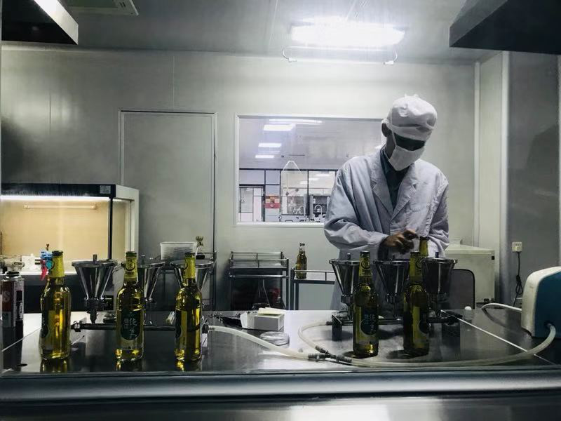 前往灌装车间时途径质检品控车间,赵先生解释说啤酒企业的品质要求很高,因此质量部门非常重要。