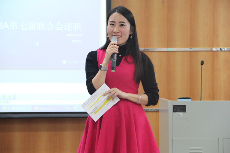 选举由MBA2016A班张诗曼同学主持。来自2015和2016级MBA班的16名同学依次上台发表竞选演说,介绍各自的竞选理由、优势及施政纲领。每个人都使出浑身解数,展示自己的优势。他们风格各异,各显神通。