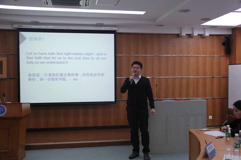 计票期间,第七届MBA联合会主席赖成杰首先向与会师生做了上一年度的工作汇报,用图文并茂的形式,向大家展示了第七届MBA联合会一年来组织开展的各类校内外活动,和取得的荣誉和收获,同时对新一届联合会寄予厚望,托以重任。