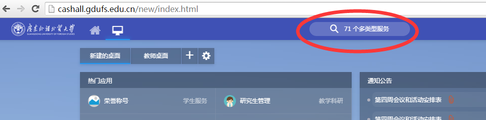 在浏览器地址栏输入网上服务大厅地址:http://cashall.gdufs.edu.cn