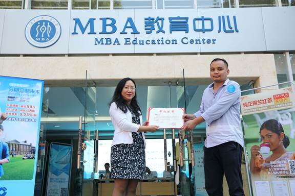 随后,魏传文为给本次活动提供大力支持的突出企业颁发企业突出贡献奖奖牌,分别有广发银行股份有限公司广州分行信用卡中心,中国建设银行广州白云支行,英伯伦锡兰红茶,华帝股份有限公司。徐艺青为给本次活动提供赞助支持的MBA校友19D班连丁同学,19C符宗卓同学、19E班黄利波同学以及12C班唐伟同学颁发荣誉证书。